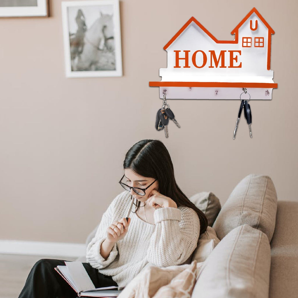 A compact wall shelf with key holder ideal to be placed in the entry way or any wall to hang your keys.